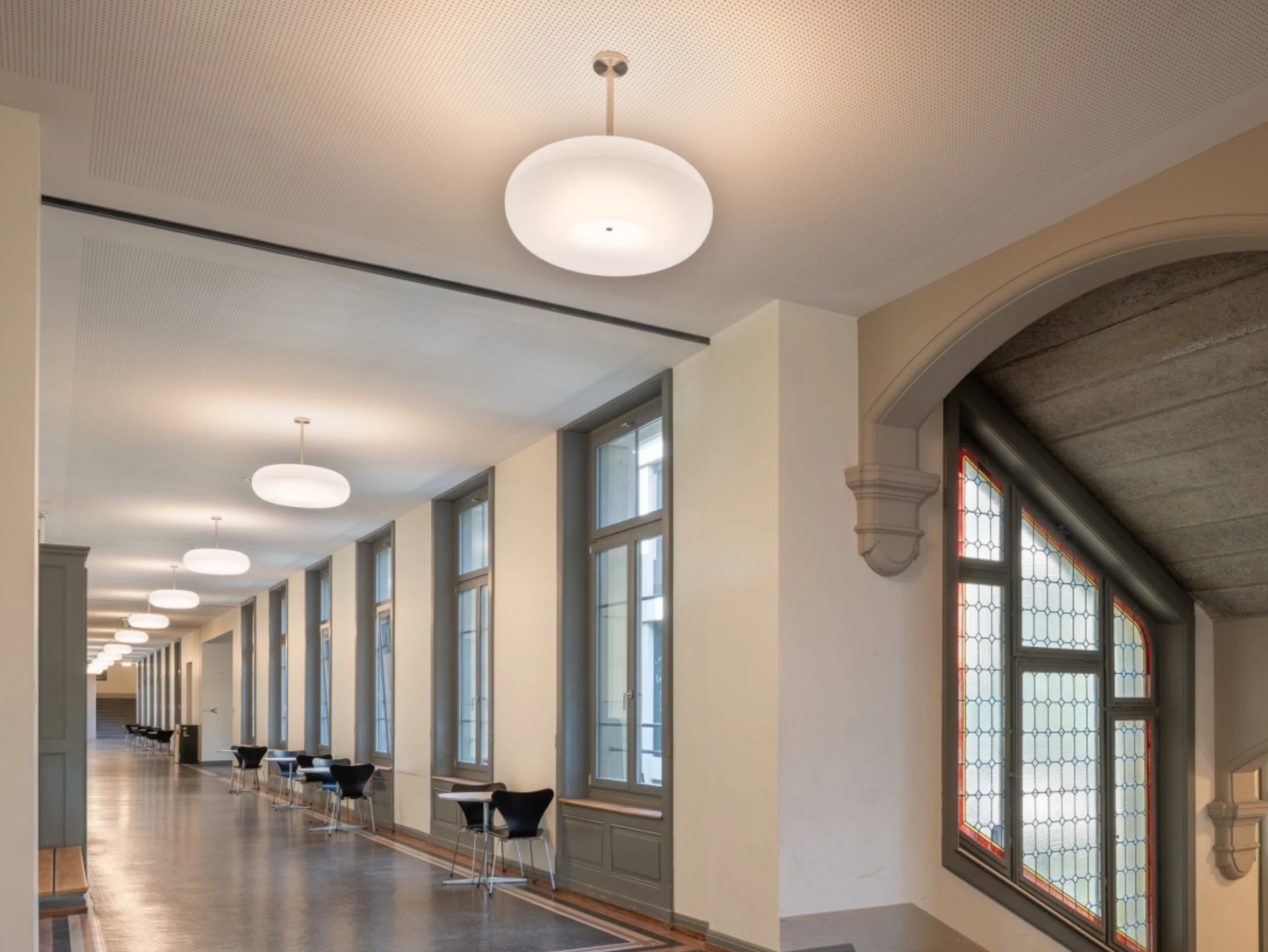Im 1906 erbauten und 2011 sanierten, denkmalgeschützten Schulgebäude der GIBB wurden in einem ersten Schritt die Leuchten in den Korridoren und Treppenanlagen auf moderne LED-Technologie umgerüstet.